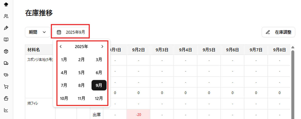 在庫推移ページの見方と基本操作