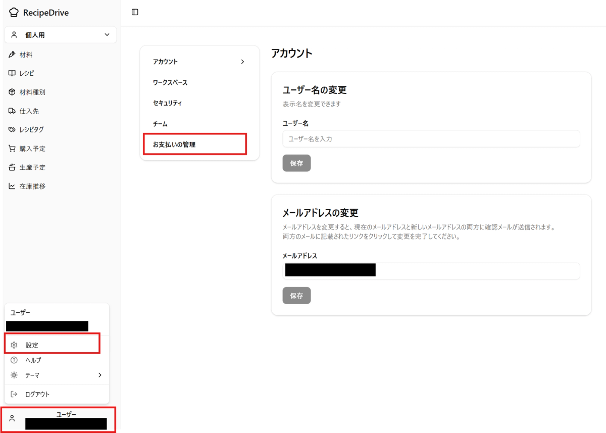 このページでは、RecipeDriveで契約プランを変更する手順をご説明します。